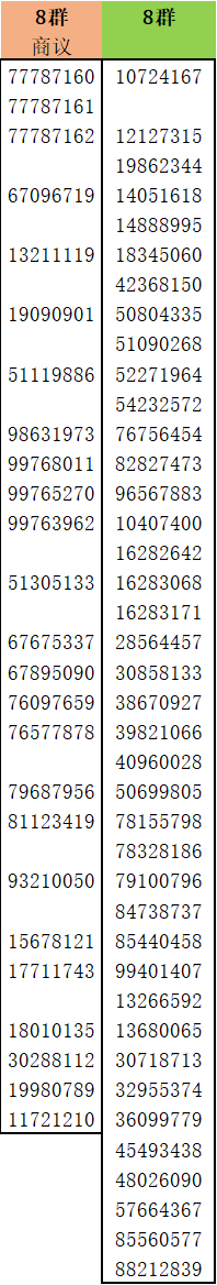 • 8位数QQ群转让列表